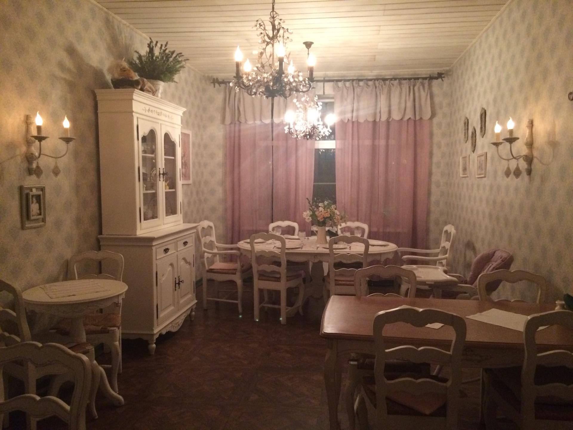Милый девчачий интерьер, вкусно, посуда заслуживает внимания)