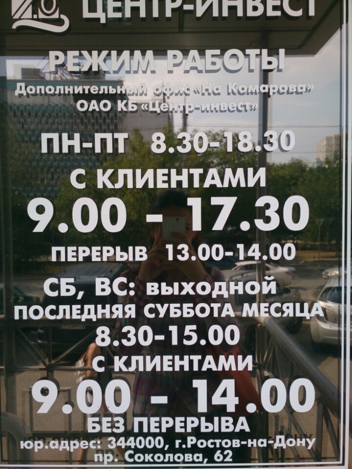 💰 Адрес, телефон, часы работы банка «КБ Центр-инвест».
