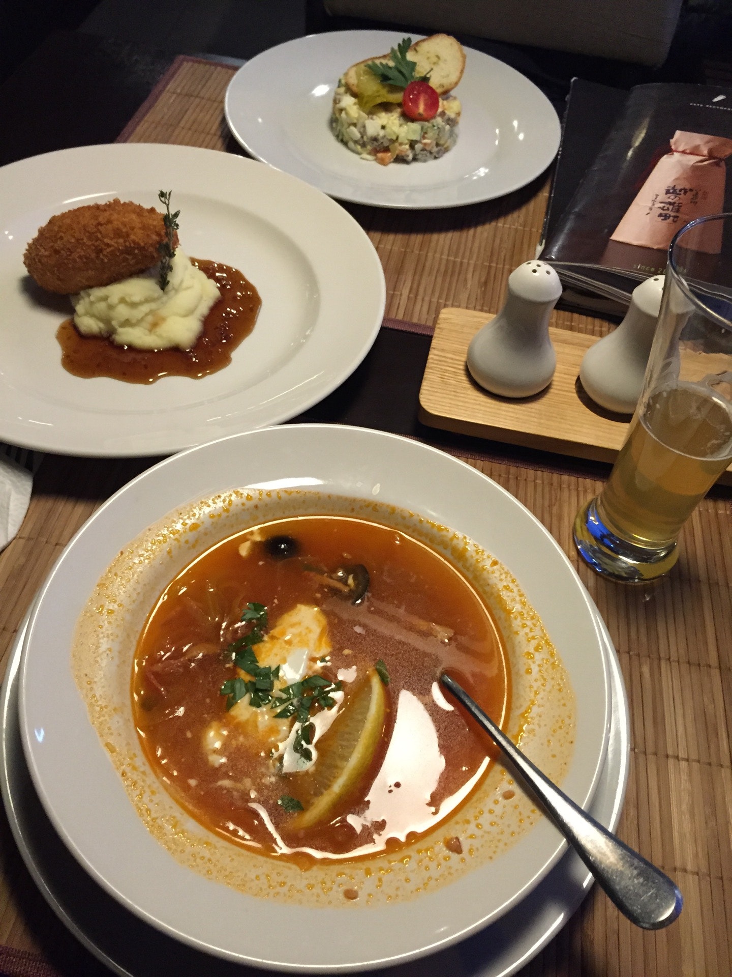 Очень быстро принесли заказ, Солянка отличная, пиво рис дешевое и вполне неплохое.