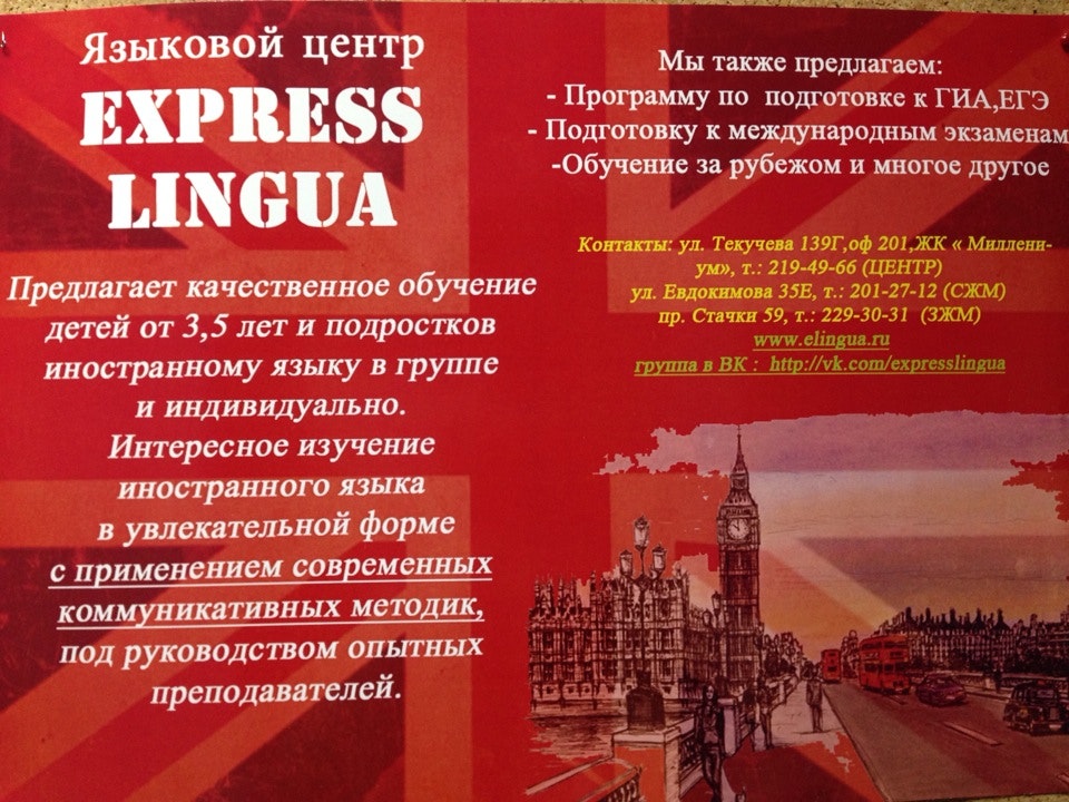 🎓 Адрес, телефон, часы работы школы иностранных языков «Языковой центр Express Lingua».